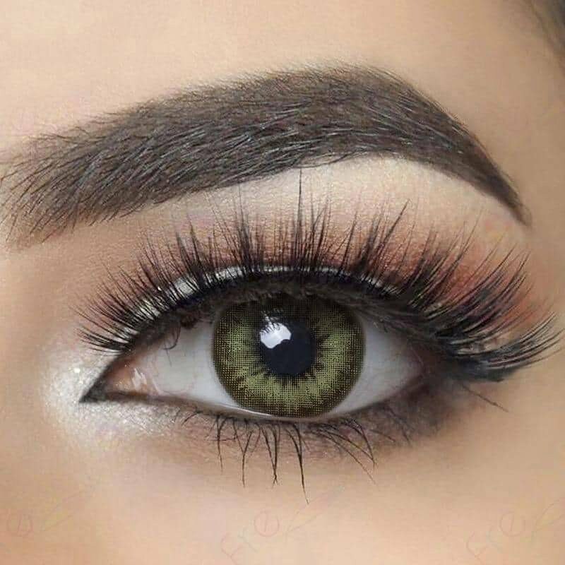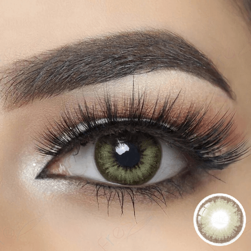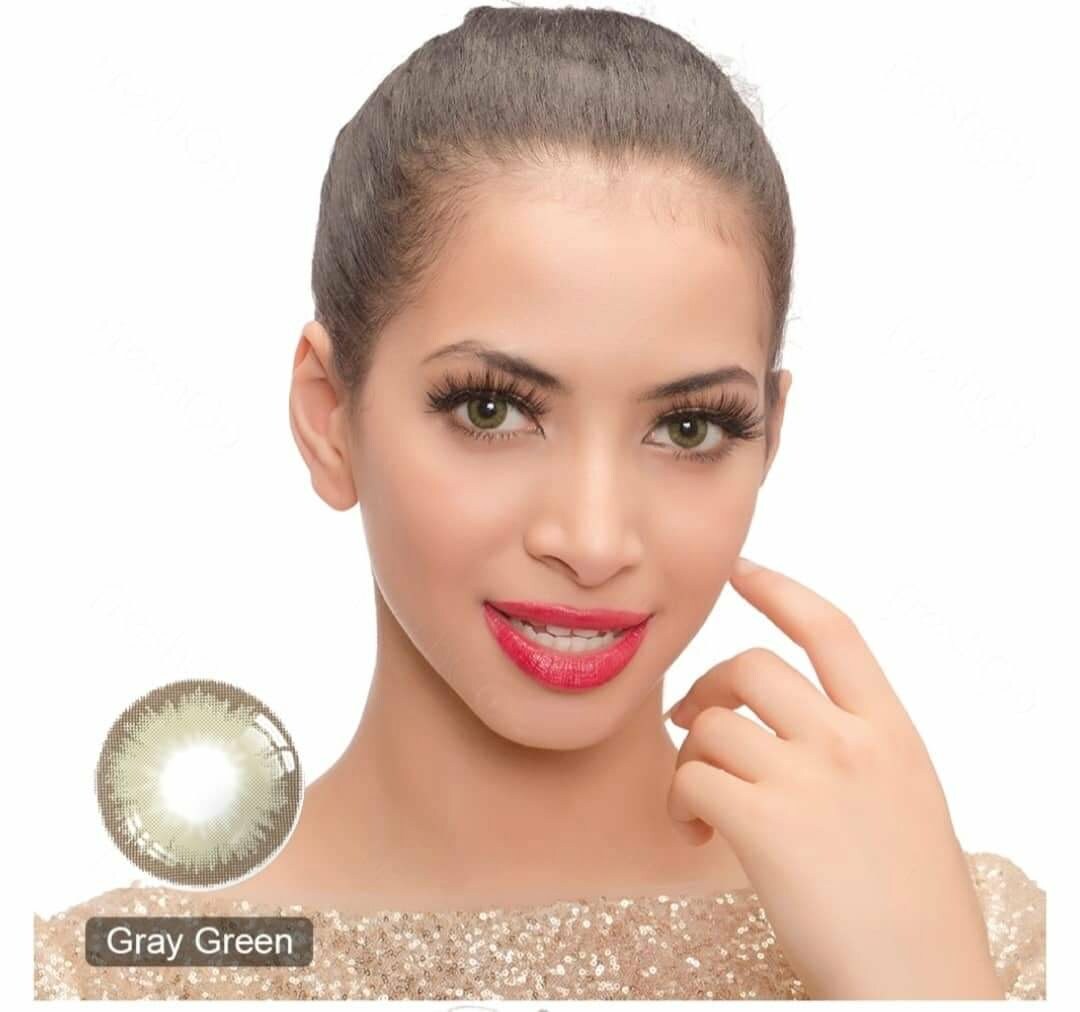 Цветни лещи FreshGo цвят Gray Green – В комплекта са включени контейнер и разтвор ( 100мл ) за съхранение на лещите