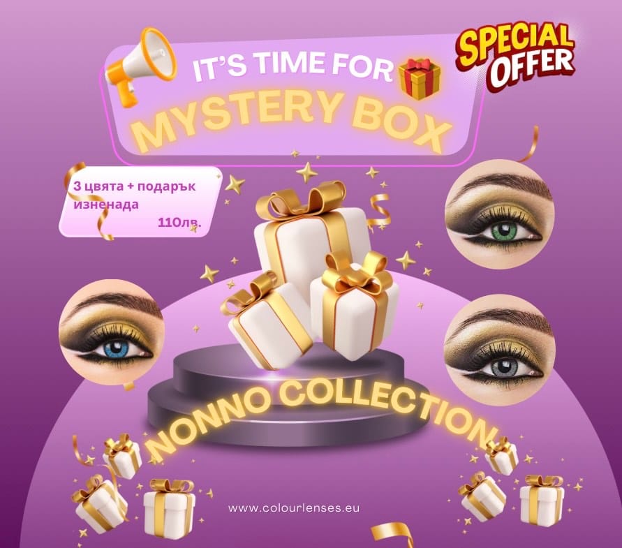 Бъди смела, дръзка и неповторима с Nonno Collection Mystery Box! В кутията ще откриеш 3 ярки и наситени нюанса, които придават характер и изразителност на всеки поглед ![]()
